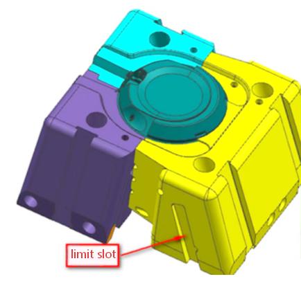 To control the travel distance accurately, limit blocks should be installed on both sides of the slider. By machining grooves into the slider sides and installing hard-stop blocks on the A-plate, you prevent over-travel that could damage the angular pins or the cooling lines.