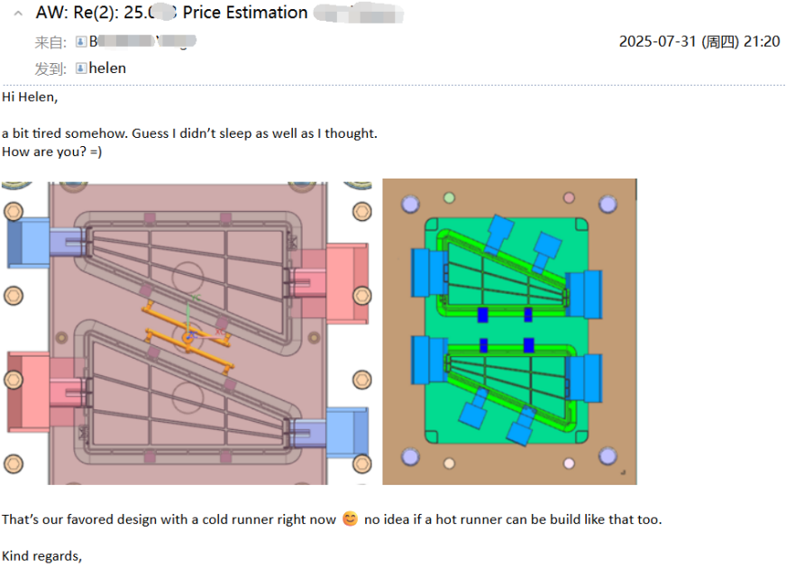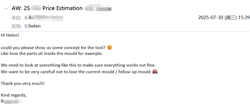 After we submitted the quotation, the client asked us to share our mold design concept and cavity layout drawing. They wanted to evaluate our design philosophy and layout in advance, because in many cases, the reasonableness of a design cannot be judged from the price alone. Issues often only surface during the DFM stage after the order is confirmed. The client emphasized that they wanted to be cautious and avoid any current or future mold problems. From their tone, it seemed they had already encountered troubles with previous suppliers.
