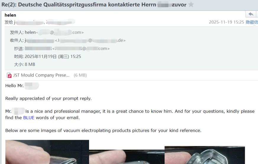 Here is an example from a new customer in 2025 who showed interest in us after initial communication (email screenshot).