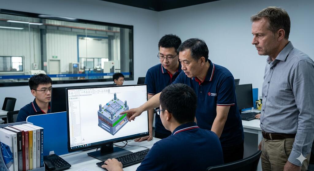 We once hosted a German customer (who later ordered large 4-8 ton molds). They had received several quotes but hadn’t placed an order. After face-to-face discussion and a workshop tour, we went to the design department. The customer posed a difficult problem we had never encountered before—a complex structural issue that had stumped others