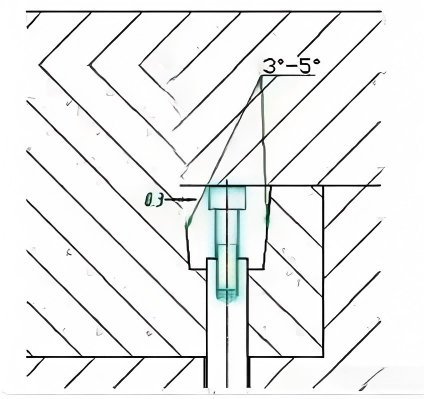 (1) A 3-5 degree taper on the contact surface between the push plate and internal insert to minimize wear and extend mold life.