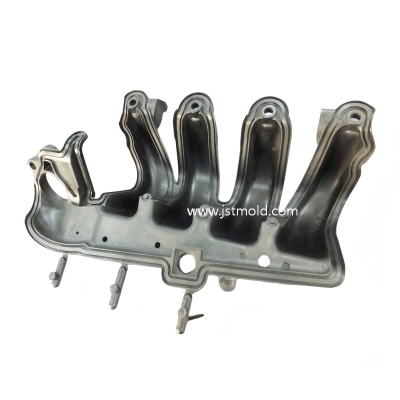 Automotive intake manifold manufacturer, plastic manifold injection mold, JST Mould engine parts, custom PA66 GF30 molding China, Tier-1 automotive plastic supplier, vibration welding plastic parts, high-volume engine module molding, precision technical plastic tooling, fast lead time car part molding, lightweight automotive engine components, burst pressure resistant plastic.