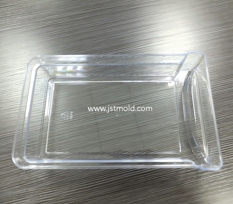 Transparent plastic molding, optical grade injection parts, JST Mold appliance components, high-clarity plastic tray mold, custom thin-wall molding China, refrigerator drawer manufacturer, Tier-1 appliance plastic supplier, fast lead time mold maker, high-volume transparent plastic parts, precision appliance plastic engineering.