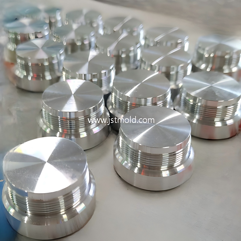 Precision aluminum CNC machining, custom threaded metal caps, JST Mould technical hardware, aluminum knob manufacturer China, diamond-cut plastic parts mold, Tier-1 consumer electronics supplier, high-volume CNC part production, technical surface texturing services, fast lead time machined components, custom aluminum finials, IATF 16949 technical parts.