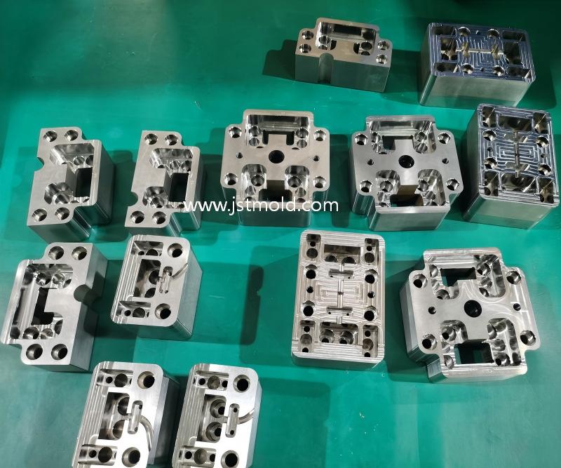 Micron-Level Dimensional Stability: Each component shown features complex internal pockets, bored apertures, and intricate 3D geometries. JST Mould utilizes state-of-the-art high-speed 5-axis CNC milling and precision grinding to maintain tolerances within +/- 0.005mm. This extreme precision ensures a "first-time-right" fit during mold assembly in Germany, eliminating the need for secondary manual adjustment.