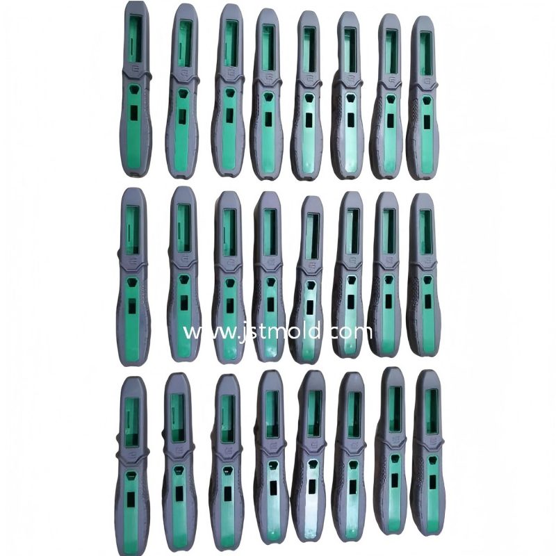 This technical display of dual-color enclosures is a definitive showcase of JST Mold’s expertise in high-volume 2K (double-shot) injection molding. Designed for handheld electronic devices—such as industrial testers, medical diagnostic tools, or smart remote controls—these components feature a seamless integration of a rigid structural frame (dark grey) with vibrant, ergonomic accent zones (green). We specialize in providing Tier-1 suppliers and global electronics brands with multi-material solutions that enhance product durability, brand identity, and user comfort through superior tactile feedback.