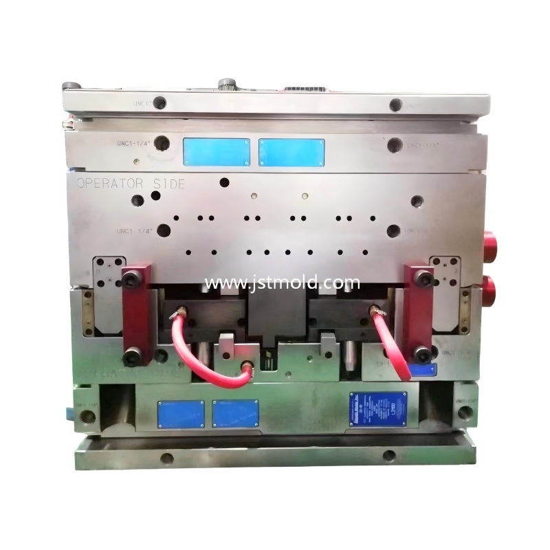 This robust, large-scale injection mold represents the industrial workhorse capabilities of JST Mold. Designed for high-tonnage production, this tool is engineered to manufacture massive automotive structural components—such as bumpers, dashboard carriers, or heavy-duty industrial housings—with absolute consistency. The clear "OPERATOR SIDE" labeling and standardized UNC mounting points demonstrate our commitment to operational safety, ergonomics, and global compatibility. We provide the automotive and large-scale manufacturing industries with tooling that maximizes uptime and optimizes performance under high-pressure cycle environments.